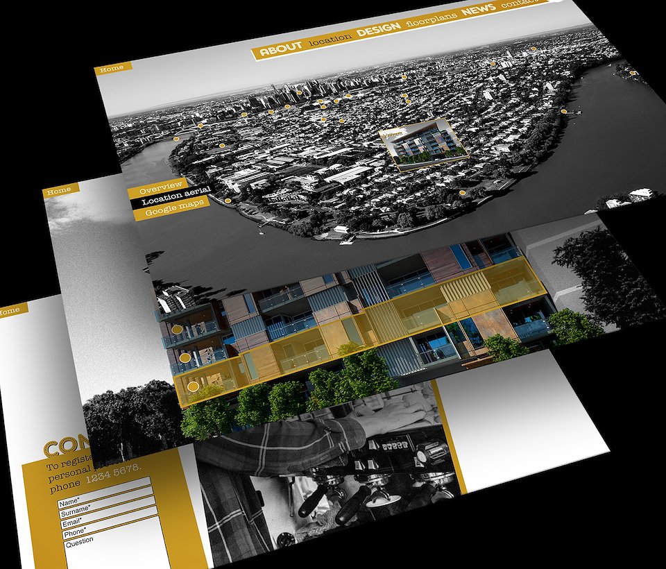 Website inc. interactive aerial location mapping, level selection accompanied by fly-through video and floorplan download.